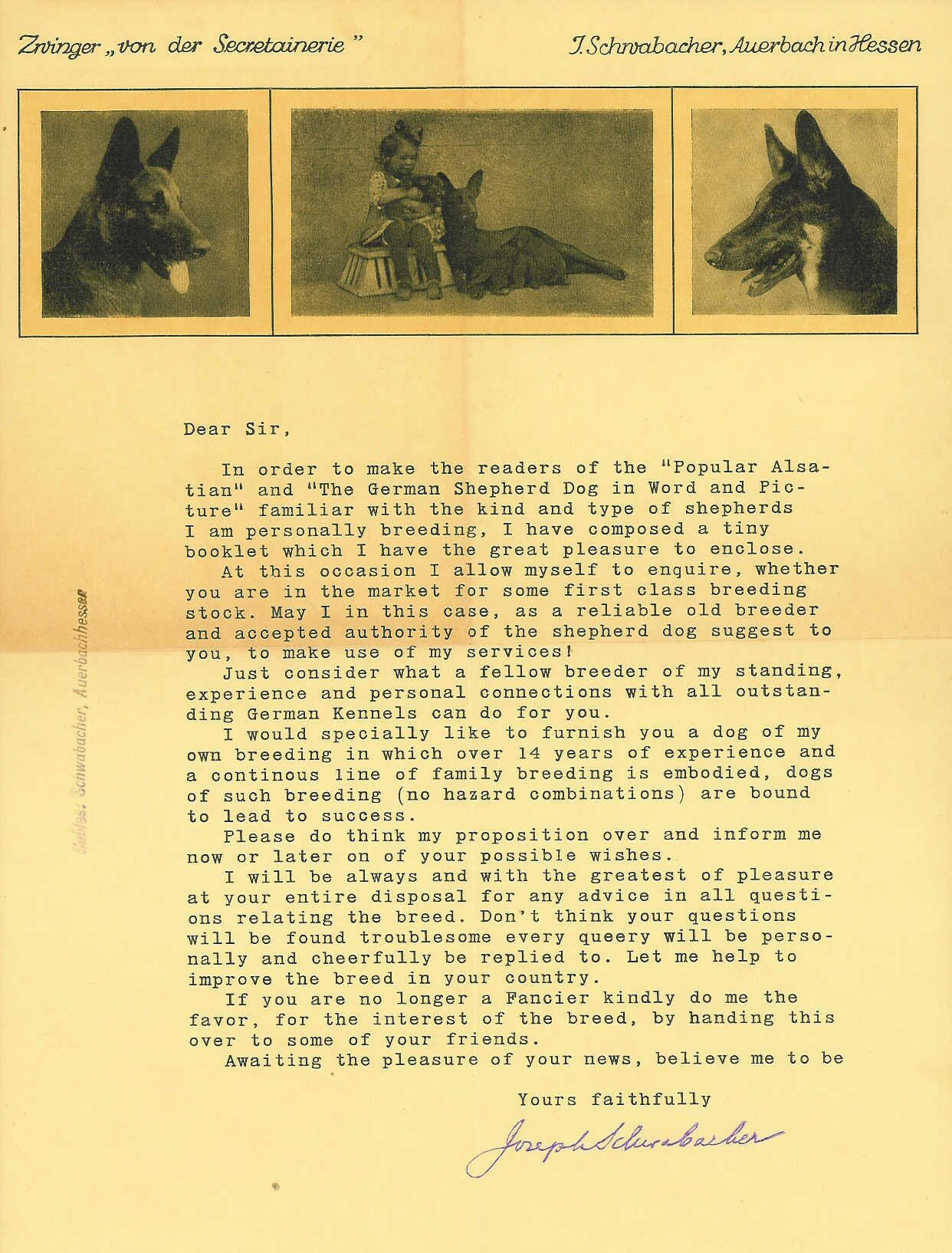 Letter from Joseph Schwabacher